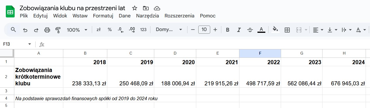 Brak środków z miasta doprowadził do powiększenia się zadłużenia spółki na koniec 2024 roku do prawie 700 tys. zł. Dla zobrazowania jak to wyglądało na przestrzeni lat wystarczy sięgnąć do publicznie dostępnych sprawozdań finansowych: