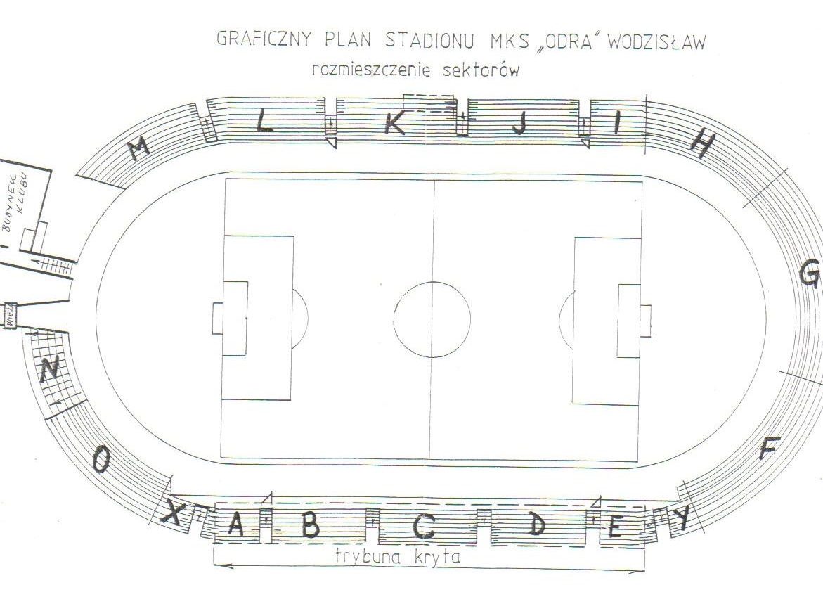 Projekt opracował p.Ignacy Dembowy, którego brat Stanisław przez długie lata reprezentował barwy „Odry”. Aby uzyskać pozwolenie na budowę trzeba było dostać zgodę wodzisławskiej parafii, której własnością był grunt. Dzięki temu, że p.Stęchły należał do rady parafialnej wyjednał sobie u proboszcza odstąpienie terenu za symboliczną złotówkę na okres 99 lat.